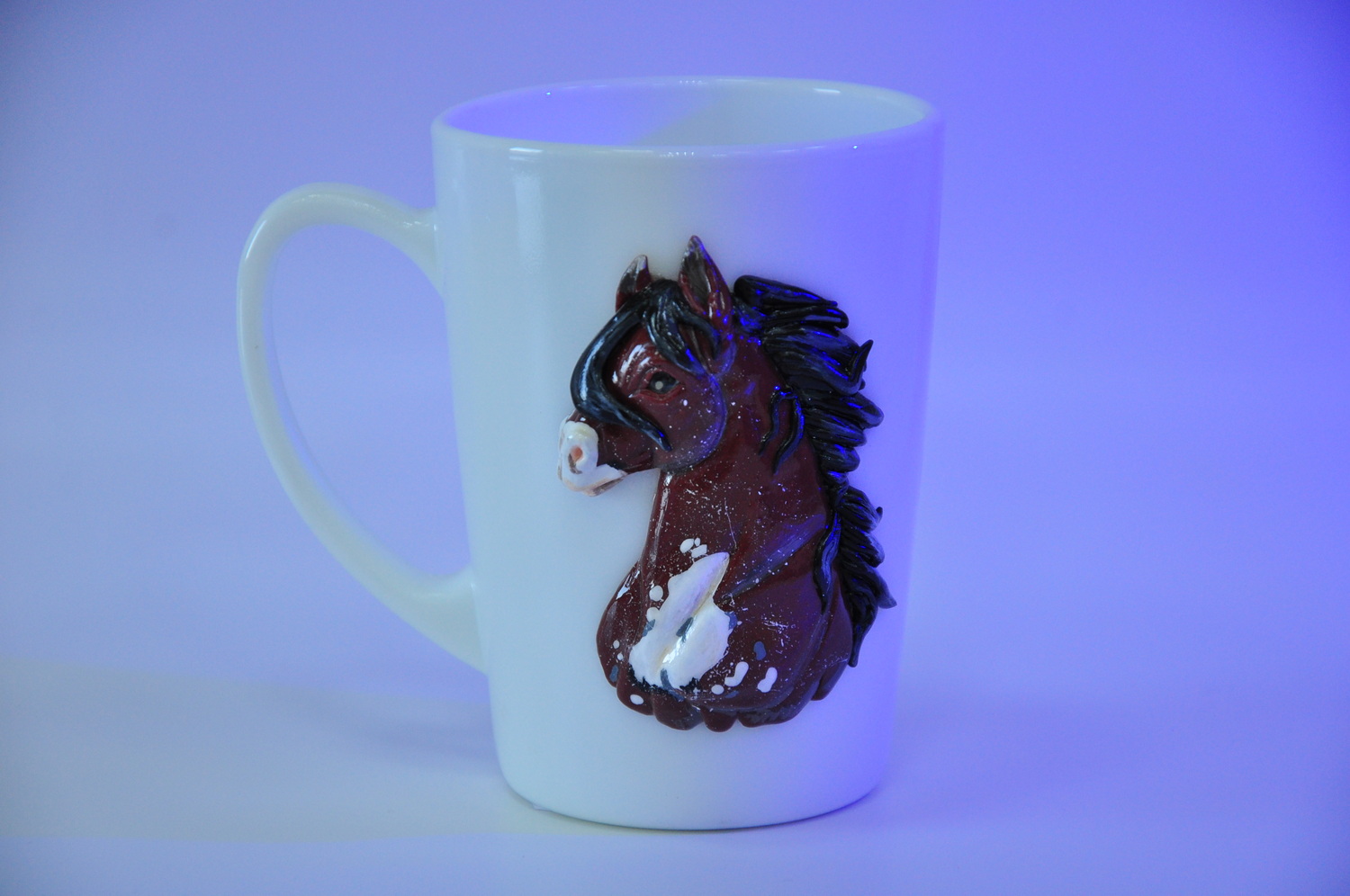 – Хорошо помню, что продала первым. Заказ сделал парень: захотел кружку в милом стиле, чтобы они вместе с его девушкой держались за ручки. Сделала маленькие фигурки, они держались за ручки, как и заказывали. Он был так рад! Но я своей работой не была довольна – сейчас бы ее переделала. Отдала эту кружку за 800 рублей. Заказчик сказал, что дешевле бы просто не нашел – на «Авито» подобные изделия от 2000 до 3000 рублей. Сейчас у меня опыта больше, но цену все равно сильно не поднимаю – максимум 1500 рублей. Сейчас, к слову, делаю сложнейшую для себя работу. Купила маленький мольберт, нарисовала бегущую лошадку. Рядом с картиной должен быть котик-художник. Он сделан из полимерной глины: вылепила ему лапки, ушки, надела на голову беретик, добавила крылышки и хвостик. Сделать-то сделала, но почему-то все в одно не складывается. Буду доделывать.