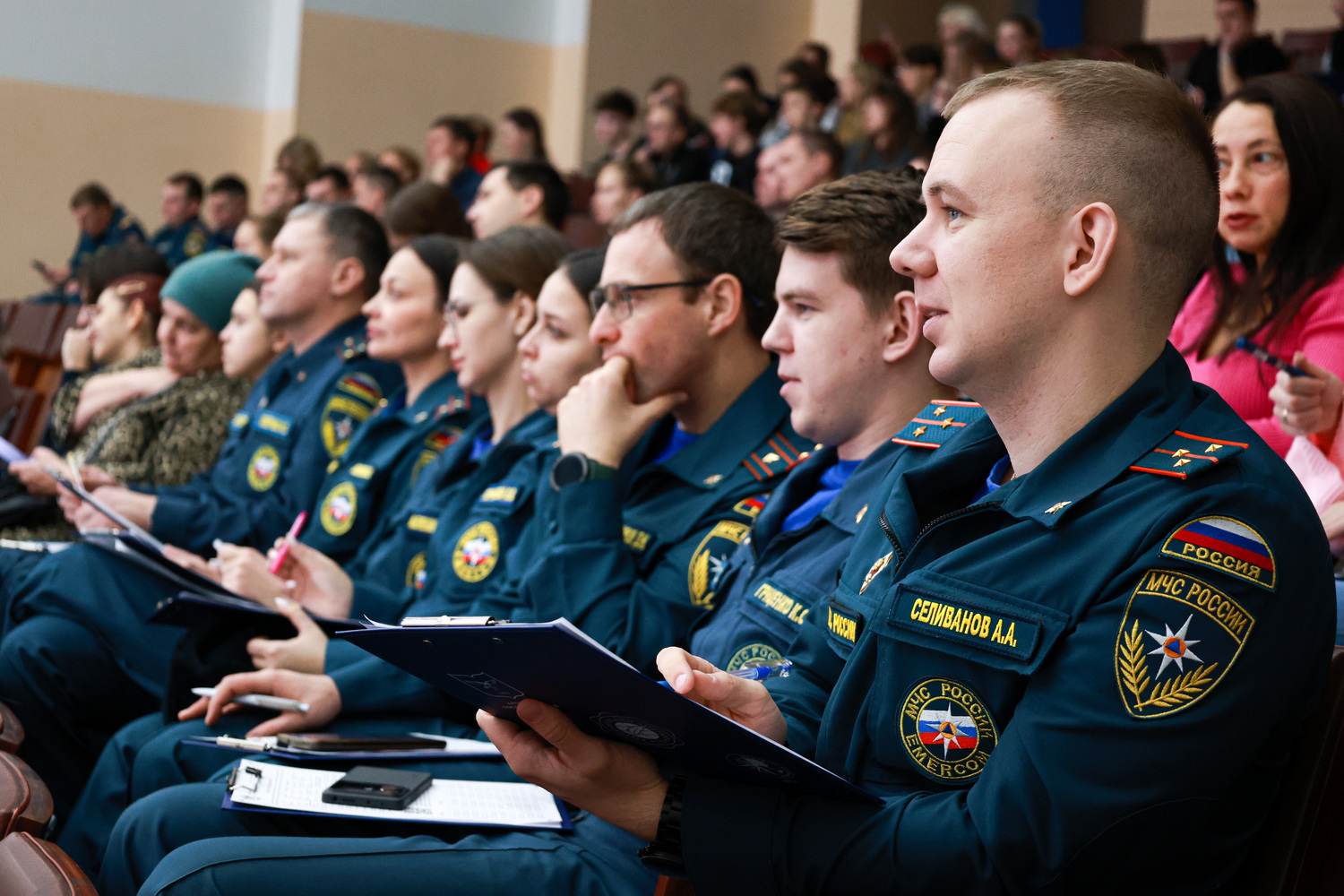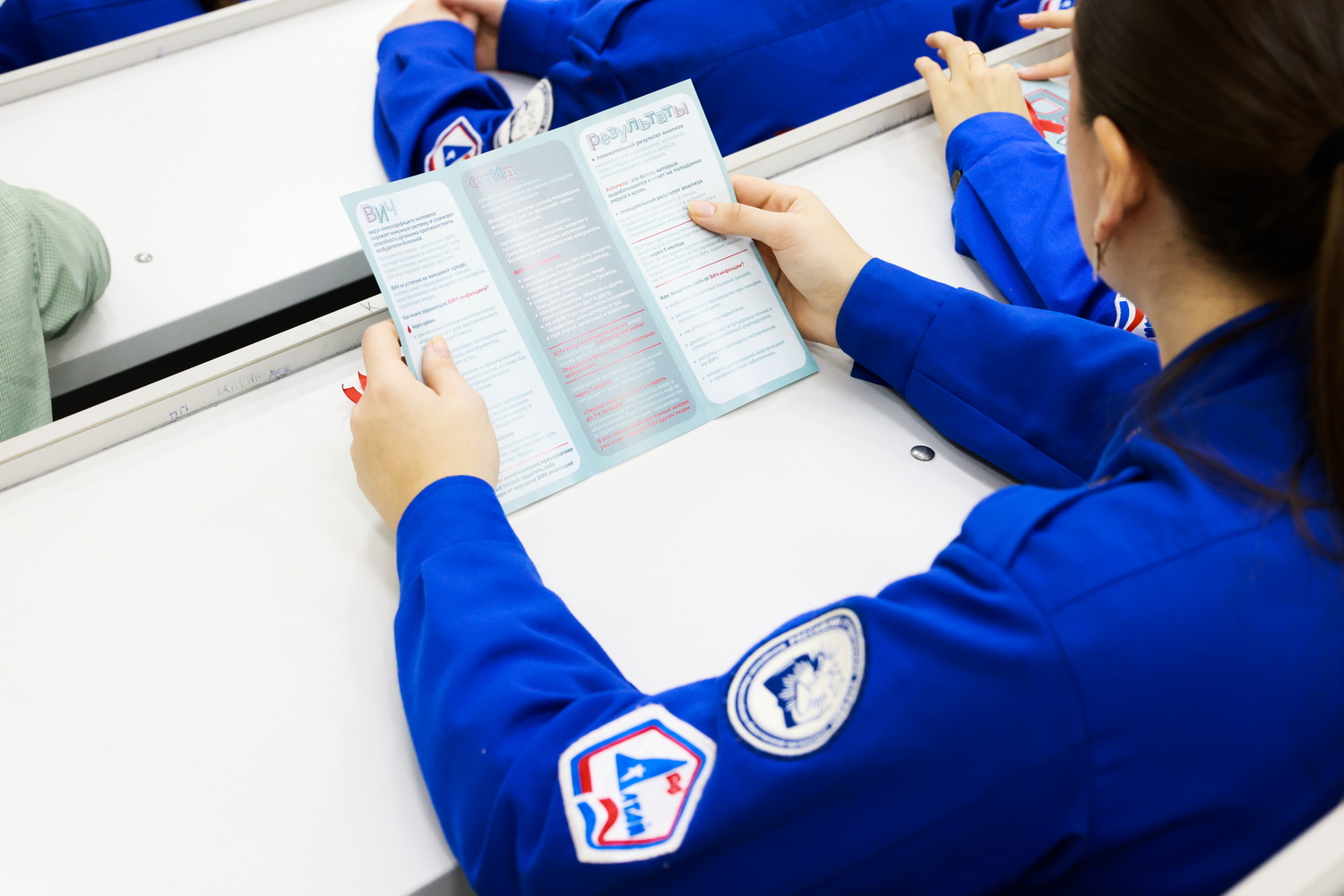В холле около стойки регистрации настоящее столпотворение – всем хочется пробиться за планшеткой с бланком ответов. В очереди выделяются люди в бирюзовой форме: это сотрудники МЧС России по Алтайскому краю, которые уже по традиции приходят на диктант в АлтГУ.