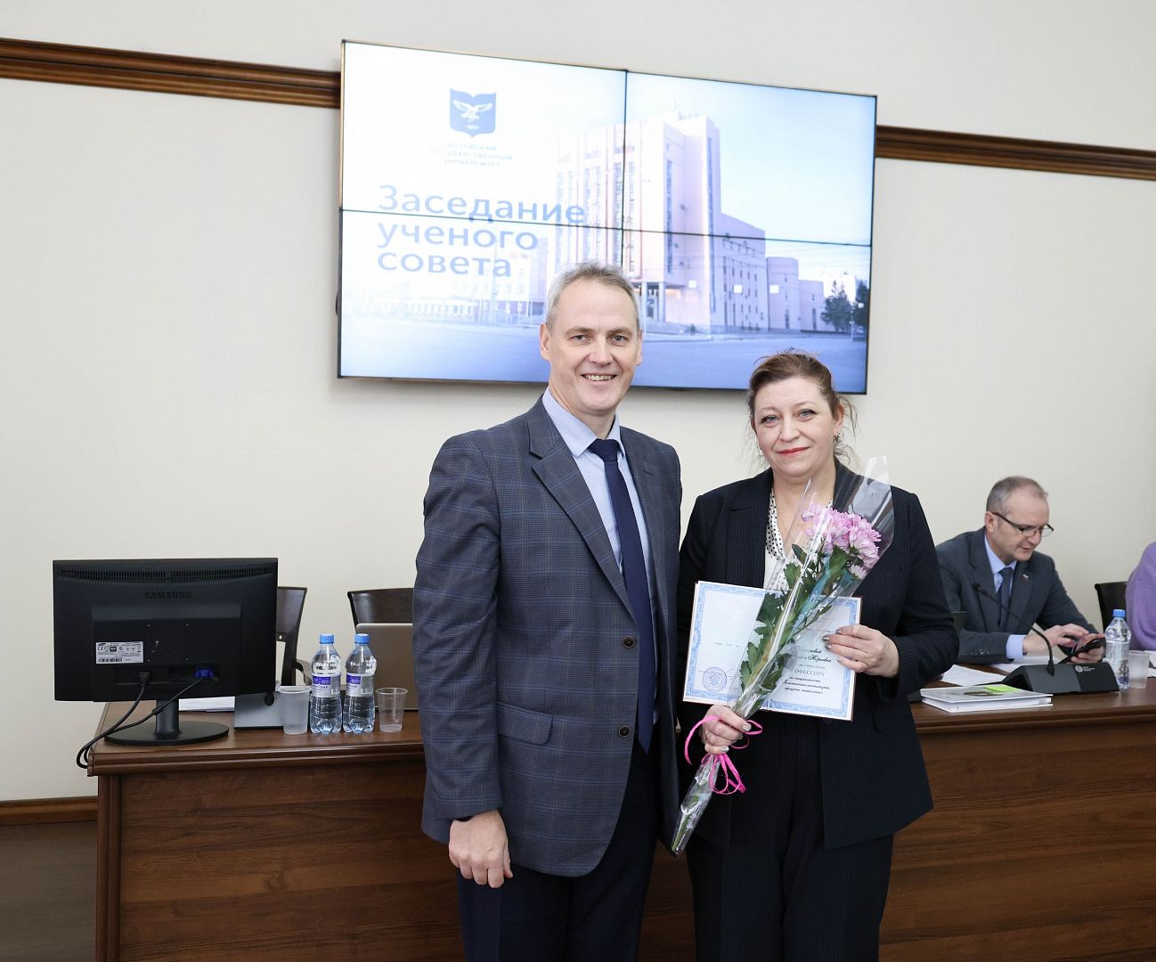 На фото Дмитрия ГЕРАЙКИНА ректор АлтГУ поздравляет профессора Ярославу Юрьевну Шашкову