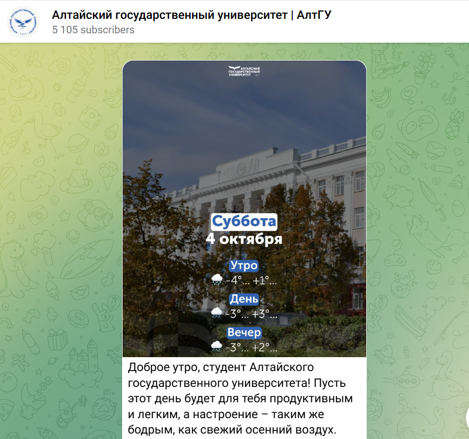 Отметим, что в сентябре самыми просматриваемыми постами в официальном Telegram-канале АлтГУ стали: