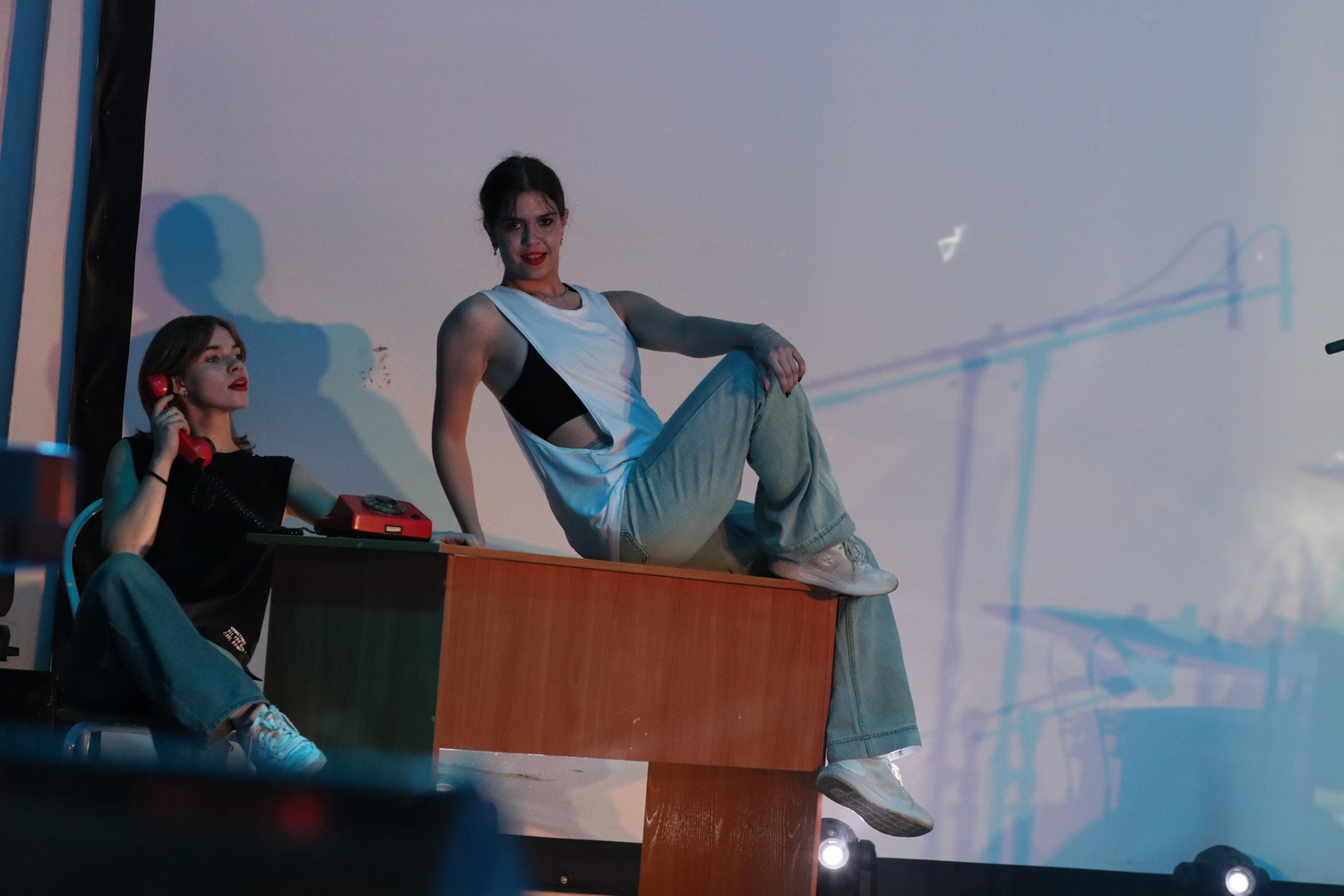 Номер «Telephone» Александры Погребновой и Марии Чикильдик. Студентки выступили под зажигательный трек нулевых: Telephone – Lady Gaga, Beyoncé. Их эксцентричный стиль и движения, а самое главное – красный телефон (обыграно название песни) словно перенесли зрителей в 2000-е, где на другом конце провода – драйв, электропоп и эпатаж.