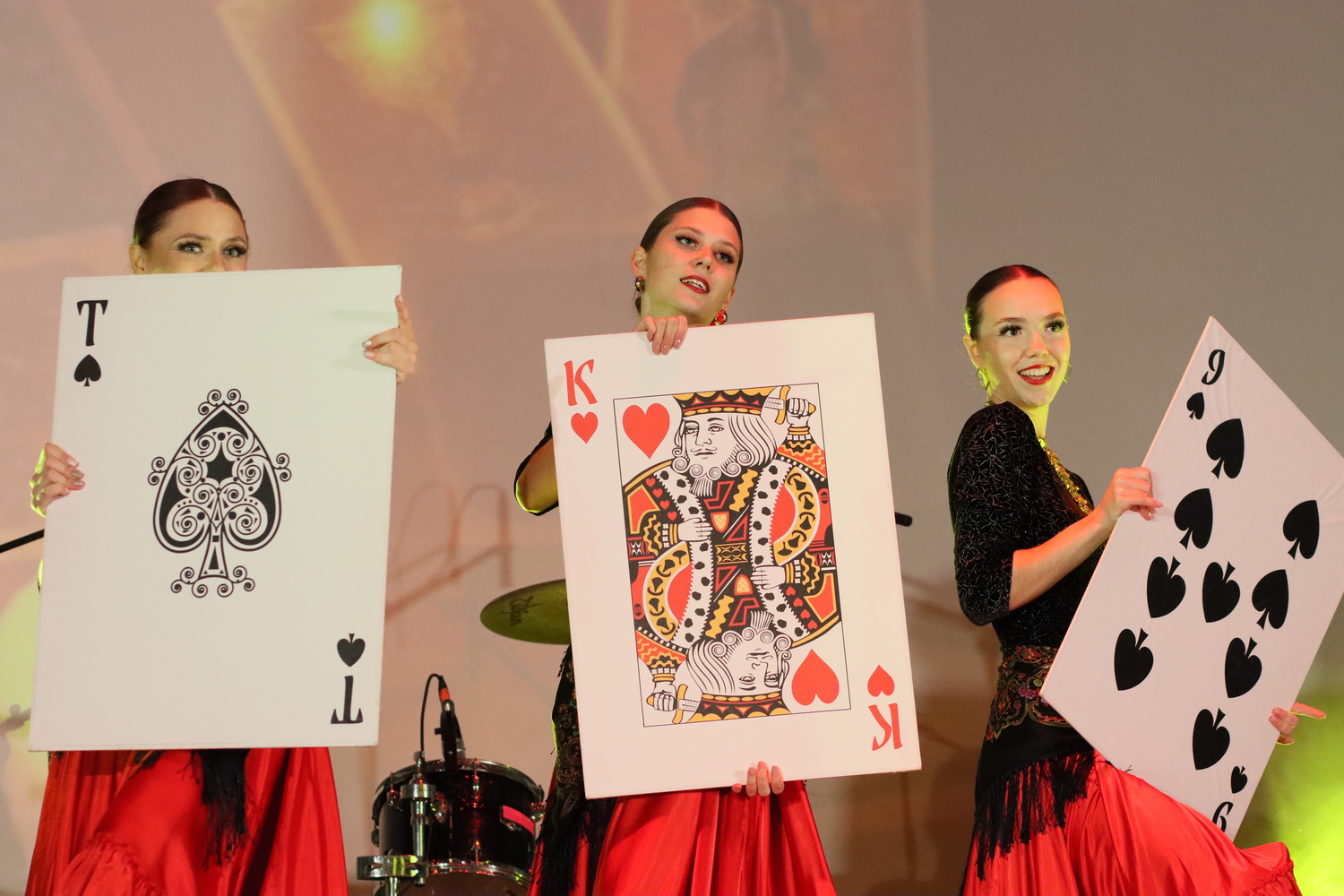Номер «Песня цыганки» Анастасии Миловановой, Натальи Дайбовой и Екатерины Боковой. Выступление привлекло внимание зрителей яркими костюмами и отточенными движениями. И, конечно, игральными картами – какие цыганки без них? Удивил всех и цыган с конем: его секундное присутствие рассмешило всех! Номер действительно страстный.