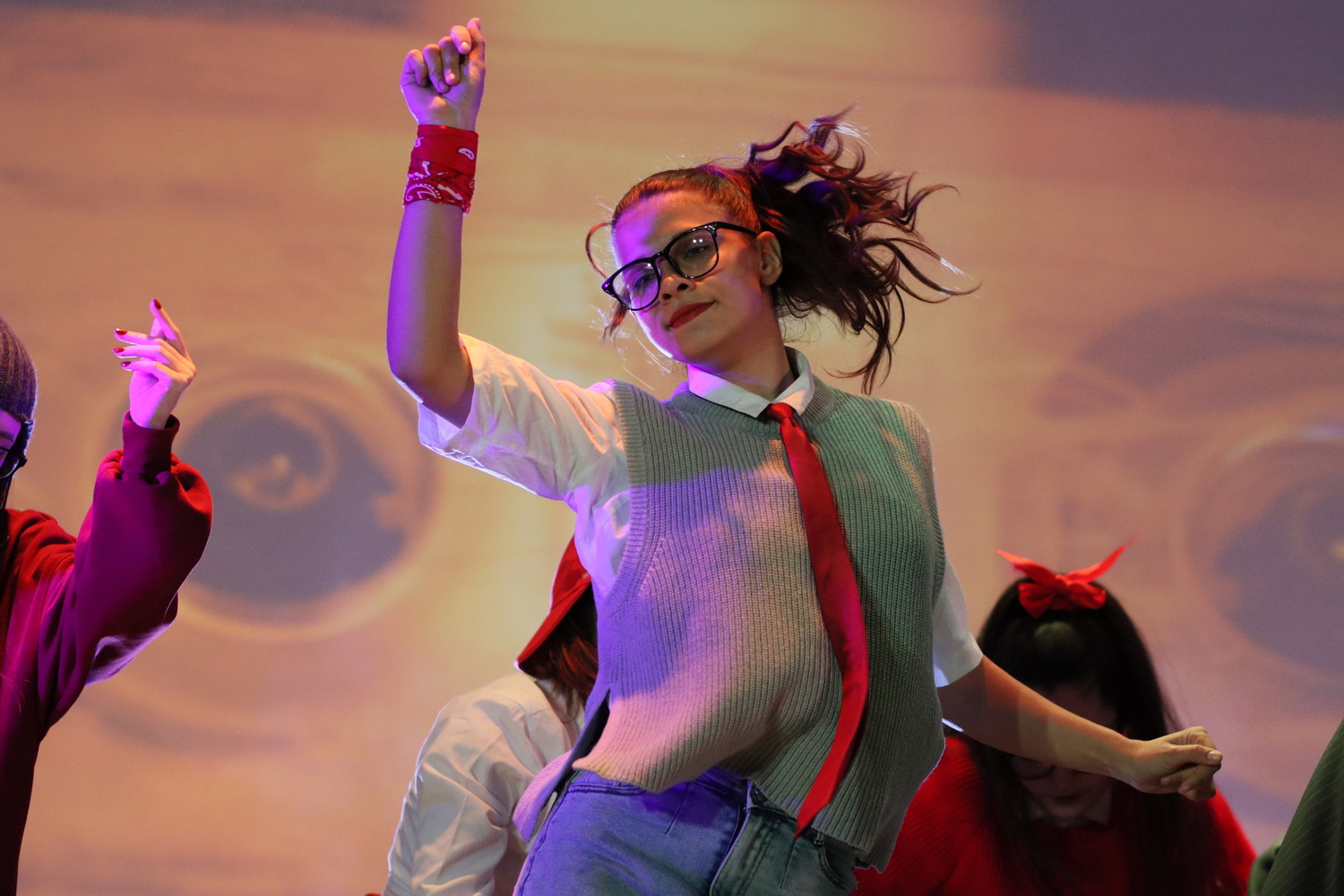 Номер «Где-то» коллектива современного танца «Джуманджи». Концепцию выступления объяснила староста коллектива Анастасия Подгора: «Главная идея номера – нужно жить здесь и сейчас! Танцоры – те самые беззаботные, юные, полные энергии, отдающиеся своему внутреннему ритму и ловящие каждый момент в жизни». Как и всегда, безусловно одаренные участники «Джуманджи» смогли безупречно станцевать – показать, где это энергичное «где-то». Энергия молодости бурлила на сцене!
