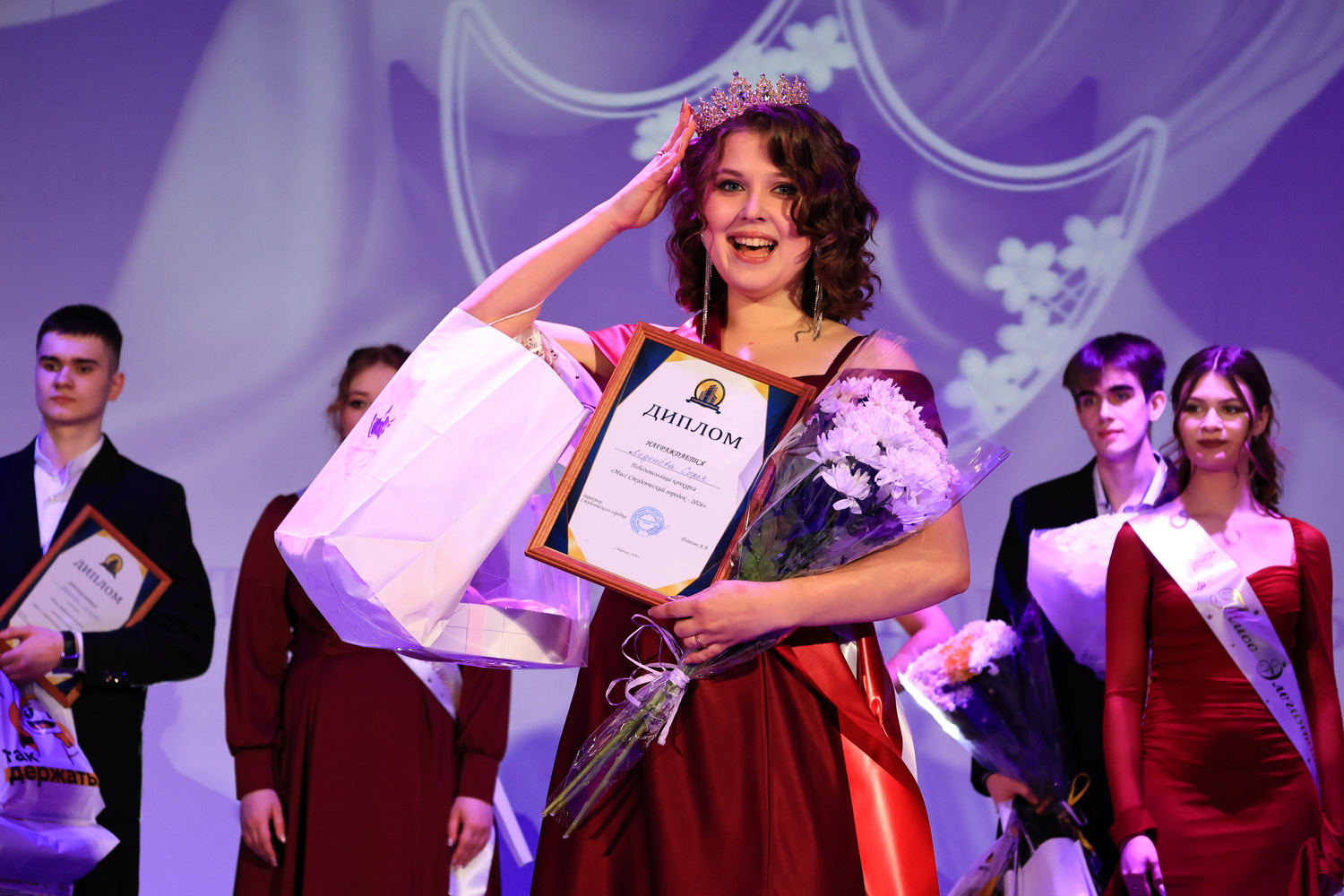 9 апреля в АлтГУ прошел финальный этап конкурса «Мисс студенческий городок – 2026». За титул самой красивой, умной и талантливой девушки студгородка боролись восемь девушек. Корону завоевала Софья Леденева – студентка 2-го курса направления «фундаментальная и прикладная химия» АлтГУ.