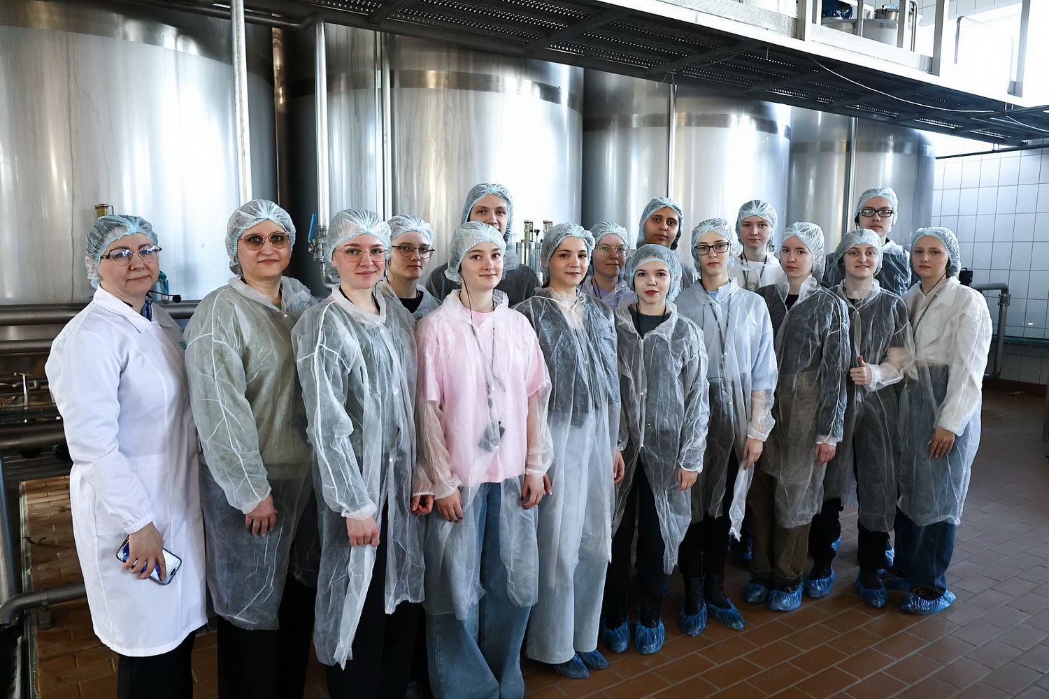 Во время экскурсии первокурсники познакомились с полным технологическим циклом изготовления молочной продукции: от приемки молока и первичной проверки сырья до выпуска товаров. Студенты посетили ключевые участки БМК: цех розлива, аппаратный цех, участки фасовки и упаковки, микробиологическую лабораторию и приняли участие в дегустации сыра, йогурта и творожков. Узнали о ГОСТе для молочной продукции и процессах ферментации молока.