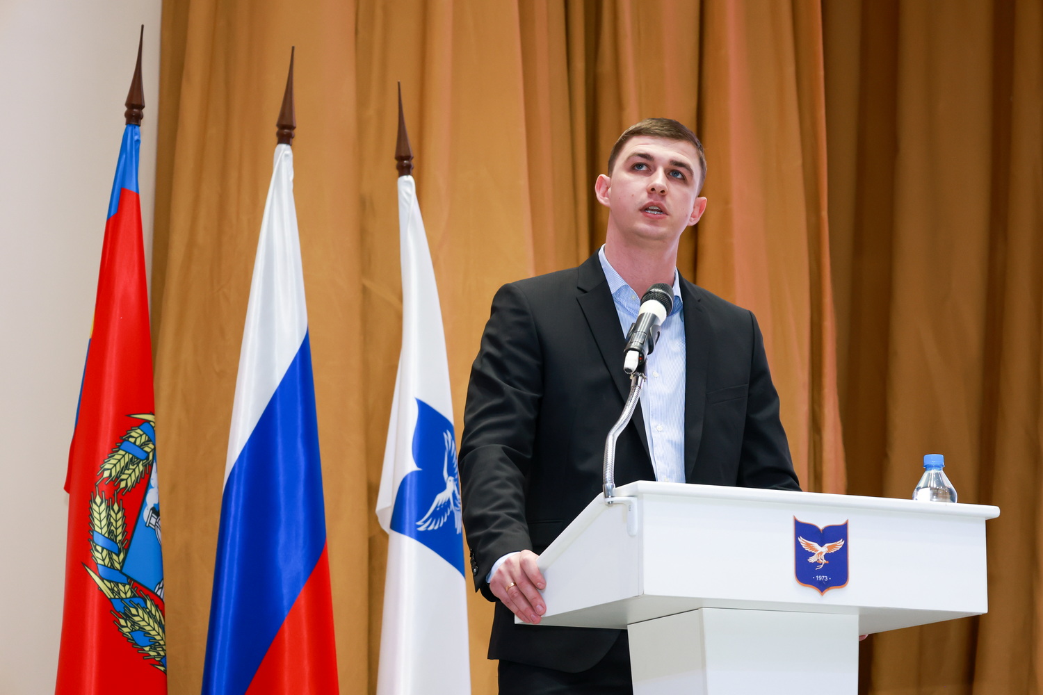 Также с речью к ученому совету и гостям обратился заместитель председателя АКЗС Денис Голобородько, выпускник АлтГУ: